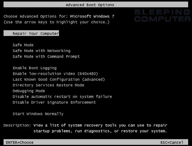 There are multiple types of Safe Mode offered, including Safe Mode with Command Prompt (you don’t need it most of the time) and Safe Mode with Networking (helpful if your copy of MalwareBytes has not been updated this week. It needs to update every few days, so it knows what the newest types of malware are.) But plain old Safe More works.